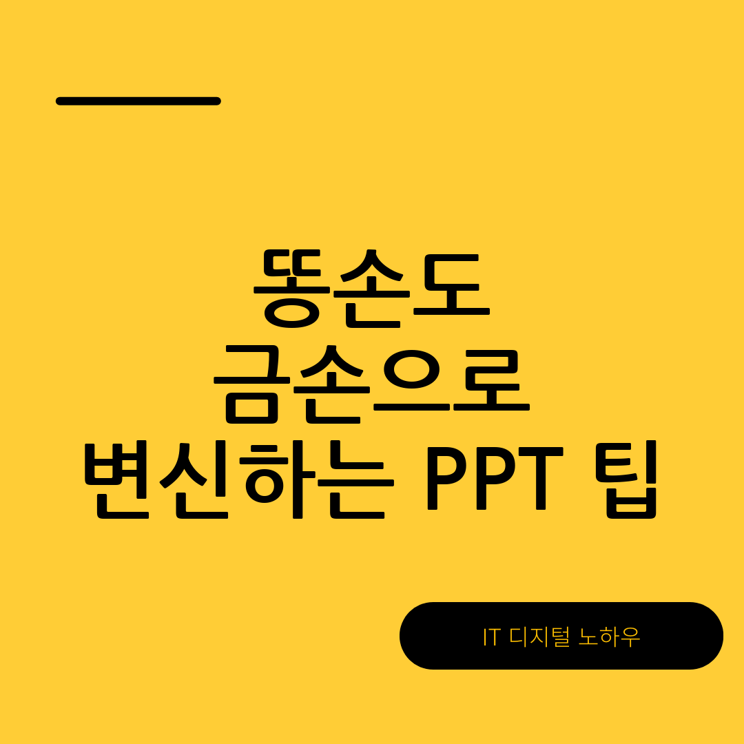 PPT 디자인은 단순한 문서 작성의 범위를 넘어 아이디어를 표현하는 강력한 도구입니다. 잘 디자인된 프레젠테이션은 청중의 관심을 끌고, 전달하고자 하는 메시지를 명확히 전달하는 데 도움을 줄 수 있습니다. 그러나 디자인에 자신이 없는 사람들, 즉 '똥손'일지라도 적절한 템플릿을 활용하면 누구나 쉽게 훌륭한 PPT를 만들 수 있습니다.
